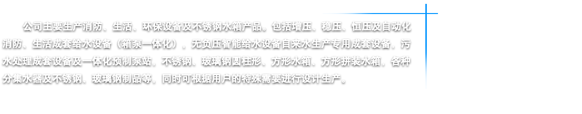 江蘇燁達環(huán)保設(shè)備有限公司坐落在江蘇省鹽城市建湖縣城,東臨黃海之濱,背倚蘇北平原,處于長三角經(jīng)濟一體化和江蘇沿海開發(fā)兩個國家級戰(zhàn)略疊加區(qū)域內(nèi),素有“水鄉(xiāng)明珠”美稱。我公司鑒定走“產(chǎn)、學(xué)、研”相結(jié)合的路子,是江蘇省供水設(shè)備行業(yè)的大型企業(yè)。公司以“一流的管理,一流的研發(fā)設(shè)計,一流的質(zhì)量意識,一流的售后服務(wù)”為宗旨,嚴格控制原材料質(zhì)素,講求“品質(zhì)是企業(yè)的生命力”的理念,嚴把質(zhì)量關(guān),從而為客戶提供優(yōu)質(zhì)的供水設(shè)備。公司主要生產(chǎn)消防、生活、環(huán)保設(shè)備及不銹鋼水箱四大類產(chǎn)品。包括增壓、穩(wěn)壓、恒壓及自動化消防、生活成套給水設(shè)備(箱泵一體化),無負壓智能給水設(shè)備自來水生產(chǎn)專用成套設(shè)備,污水處理成套設(shè)備及一體化預(yù)制泵站,不銹鋼、玻璃鋼圓柱形、方形水箱、方形拼裝水箱,各種分集水器及不銹鋼、玻璃鋼制品等,同時公司可根據(jù)用戶的特殊需要進行設(shè)計生產(chǎn)。燁達人將以科學(xué)的管理、精湛的技術(shù)、可靠的質(zhì)量、優(yōu)良的品質(zhì)向社會各界服務(wù),我們始終坦誠相見,我們當(dāng)然走在最前面······ |